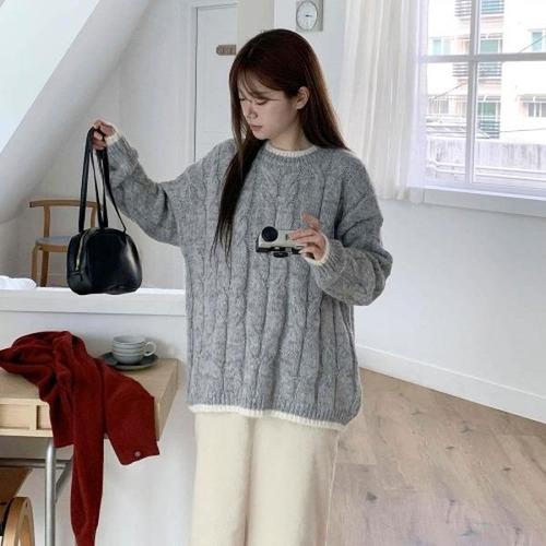 [다잇템][다잇템] 여자 콘트라스트 피셔맨 모양 꽈배기 롱슬리브 빅사이즈 니트_23328607_588872