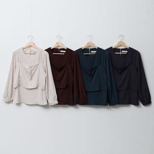 [옷자락] 여성 가을 하객 패션 빅사이즈 버튼 뷔스티에 블라우스