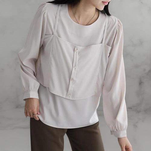 [옷자락]여성 루즈핏 빅사이즈 레이어드 뷔스티에 가을 셔츠