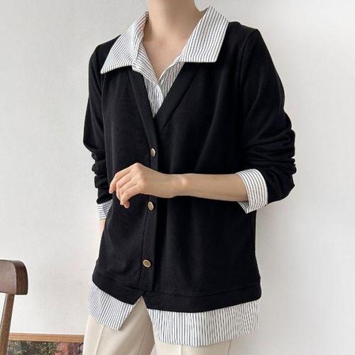 단추 캐릭터 캐쥬얼 니트 블라우스 조끼 와이셔츠 셔츠 남방 원피스:-블라우스단추