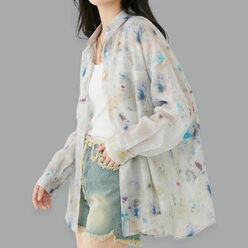 [퀸이즈] 호네 오버핏 빈티지 나염 포인트 빅사이즈 셔츠