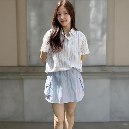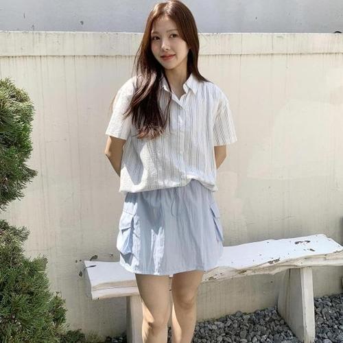 [다잇템][다잇템] 여자 반소매 빅사이즈 면원단 줄무늬 남방 콘트라스트 남방_21237571_588872
