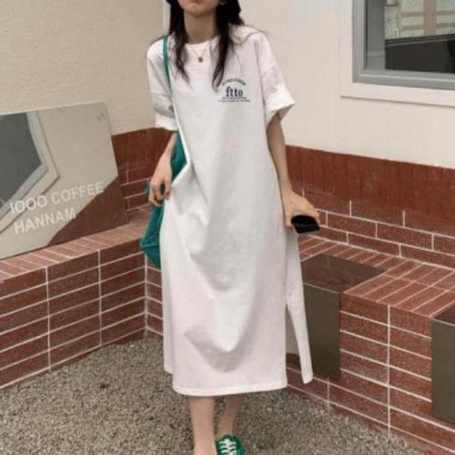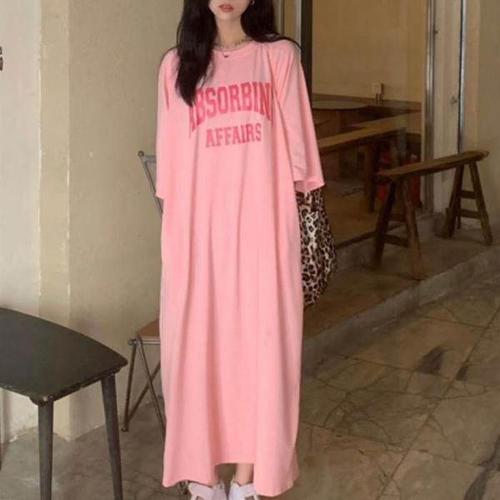 [셀러허브_여성트랜드패션]ONM 레터링 여름 반팔 롱 원피스 빅사이즈 여성 휴양