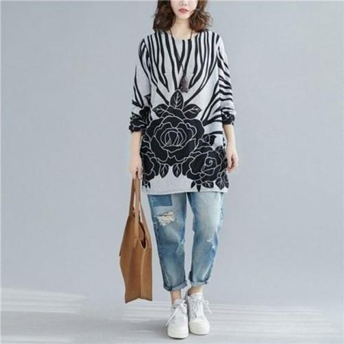 [드리다]가을 패턴 이중 빅사이즈 스판 긴팔 티셔츠 40-50대 미시 중년여성 엄마옷 캐주얼 모임 선물