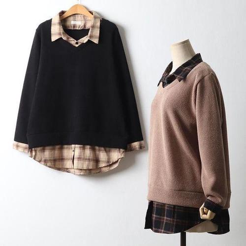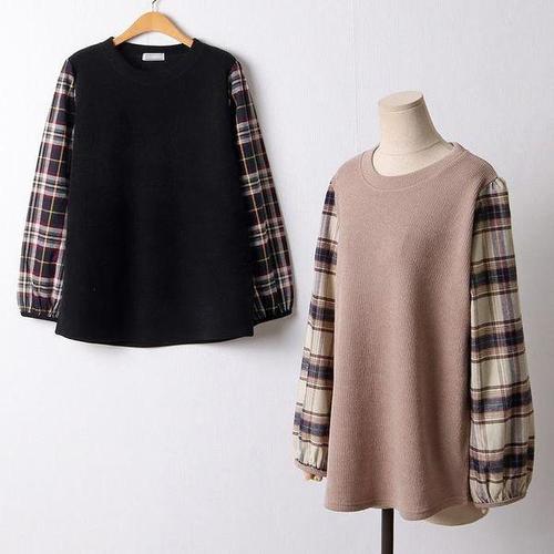 [셀러허브_여성트랜드패션]빅사이즈 511 체크배색니트티셔츠 DRIF824