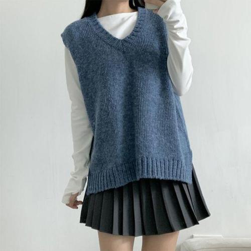 [다잇템]여자 빅사이즈 V넥 민무늬 박시핏 니트조끼