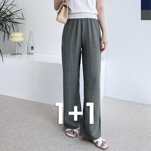 [에이치플러스몰]여성바지 일자 스판 세미 밴딩바지 신상 빅사이즈 면