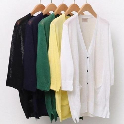 [엄지척]여름 여성 빅사이즈 바캉스룩 베이직 롱 스판 가디건_19802010_667501