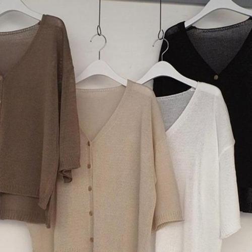 여성 여름 브이넥 골지 7부 빅사이즈 오픈 니트 가디건 캐주얼 모임 출근 휴가룩 바캉스 미시 엄마옷