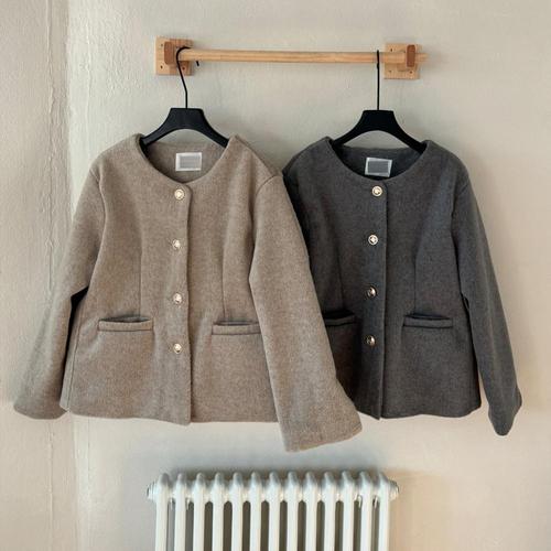 (~XXL까지) 유이솔 골드버튼 노카라 트위드 자켓 봄 가을 아우터 하객룩 오피스룩 모임룩 격식룩 빅사이즈