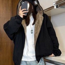 [문에이블]문에이블 여자 여성 겨울 루즈핏 빅사이즈 캠핑룩 후리스 뽀글이 플리스 집업 자켓