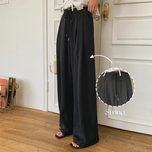 가비진 여성용 숏/롱 기장선택! 스판 좋은 핀턱 밴딩 일자 와이드 팬츠 키작녀 바지 빅사이즈까지