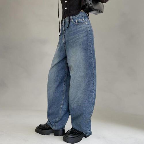*겨울기모ver*[UNISEX/숏,기본,롱]커브 빈티지 워싱 벌룬 와이드 밴딩 데님 팬츠 남여공용 빅사이즈 아이돌 댄스 바지 사계절