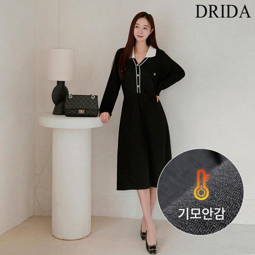 [시크라인] (~XL까지) 에드렌 배색 플리츠 니트 원피스 겨울 미디원피스 오피스룩 하객룩 연말룩 모임룩 빅사이즈