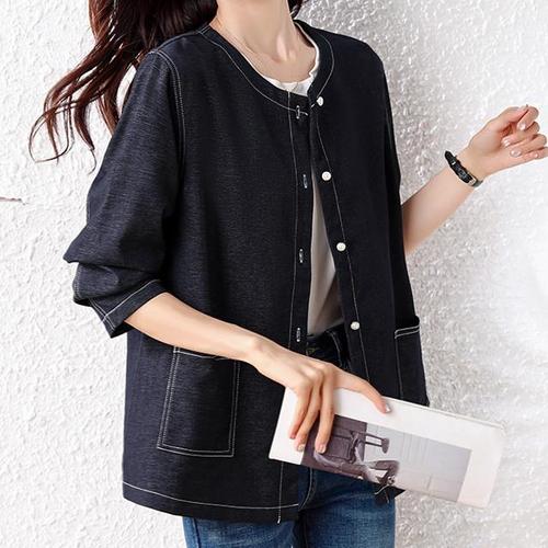 크롭자켓 빅사이즈 루즈 여성 청자켓 세탁 미디 크롭탑 가을 코튼 소재