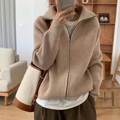 [다잇템]여성 골지 카라 스웨터 빅사이즈 집업 가디건 (11002390A)