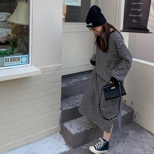 [엄지척]스트라이프 패턴 빅사이즈 원피스 캐주얼룩_19914058_667501