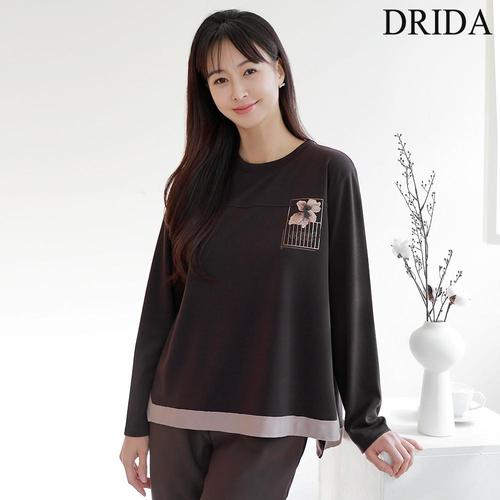[드리다]드리다 여성 플라워 빅사이즈 언발 배색 긴팔 티셔츠 40-50대 중년여성 엄마옷 모임 하객