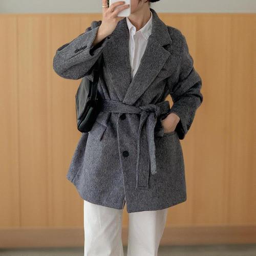 [신상오픈런]여성용 겨울 하객 패션 빅사이즈 벨트 트임 하프 퍼 자켓