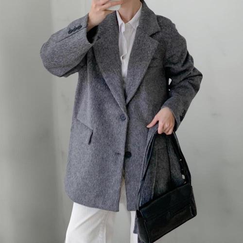 패션고리 여성 카라넥 원버튼 와이드핏 정장 투피스 HQ47