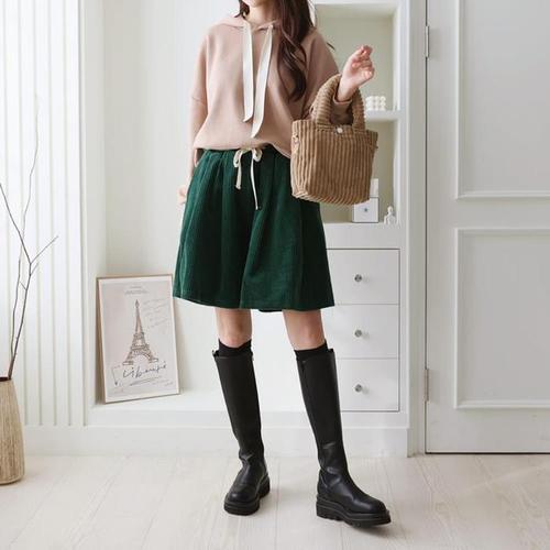 [옷자락]여성 카고 골덴 반바지 빅사이즈 와이드 기모 숏팬츠