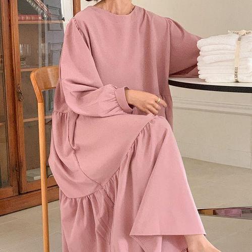 [신상오픈런]여성용 빅사이즈 캉캉 롱원피스 가을용 분홍 임부복