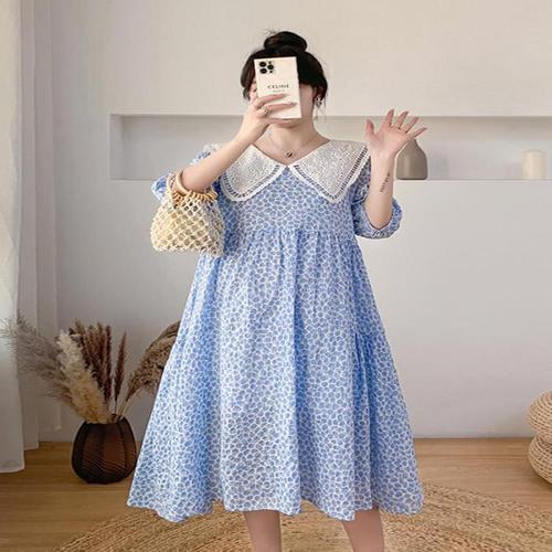 린넨 카라 롱 원피스 여성 여름 치마 빅사이즈 원피스 루즈핏 반팔 퍼프 여행 데일리