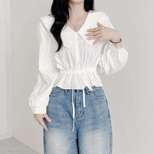 [신상오픈런]여자 리본 레이스 빅카라 루즈핏 박시 셔츠 블라우스