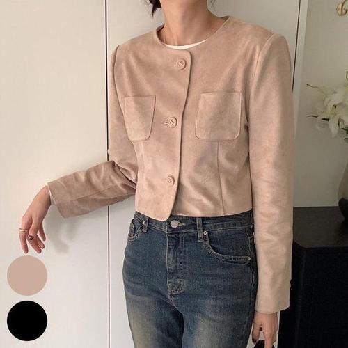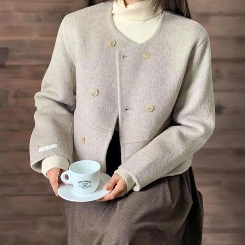[신상오픈런]여성 심플 노카라 울 혼합 핸드메이드 짧은 재킷