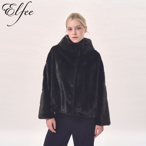 [진도]풀스킨 휘메일밍크 후드 코트(블랙)