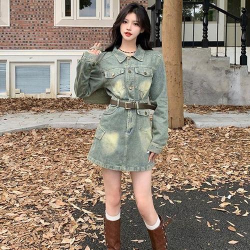 [오너클랜]인기상품 여성 캐주얼 빈티지 워싱 데님 원피스 벨트포함 [WFGO72R_260227]