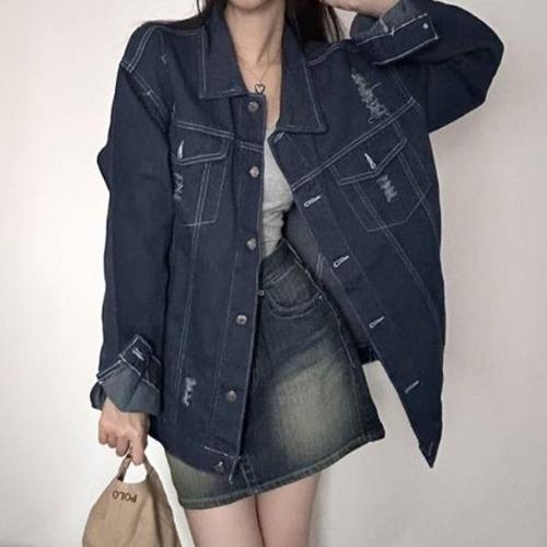 [엄지척]여성 찢청 빈티지 스타일 데님 자켓 트렌디 청자켓_20226467_667501