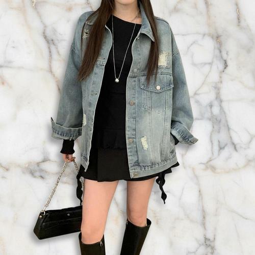 [옷자락]여성 봄가을 오버사이즈 빈티지 데님 자켓