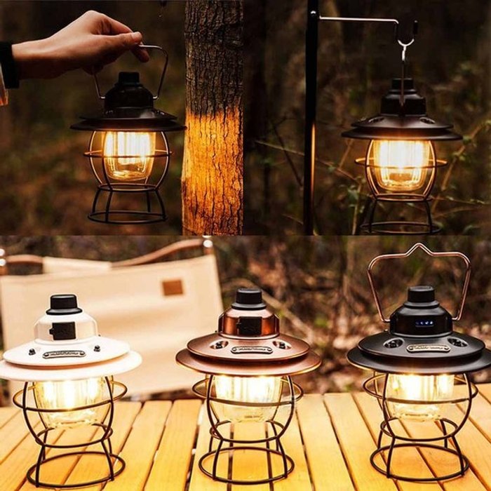LED 캠핑 방수 빈티지 라이트 충전식 랜턴 텐트 매달려 주변 조명 IPX4 휴대용