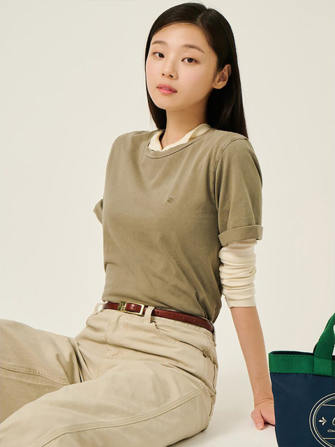 [빈폴레이디스] 밑단 스트링 반소매 다잉 티셔츠카키 (BF5742C03H)