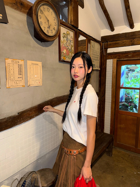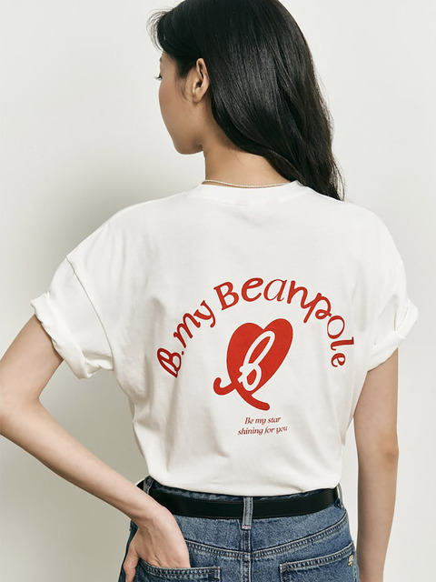 [빈폴레이디스] [B. my] 하트 로고 베이직 반소매 티셔츠화이트 (BF5842N221)