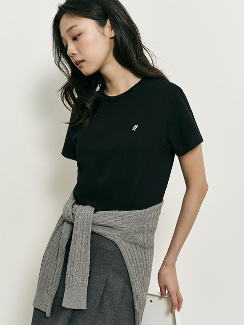 [빈폴레이디스] [B. my] 하트 로고 베이직 반소매 티셔츠블랙 (BF5842N225)