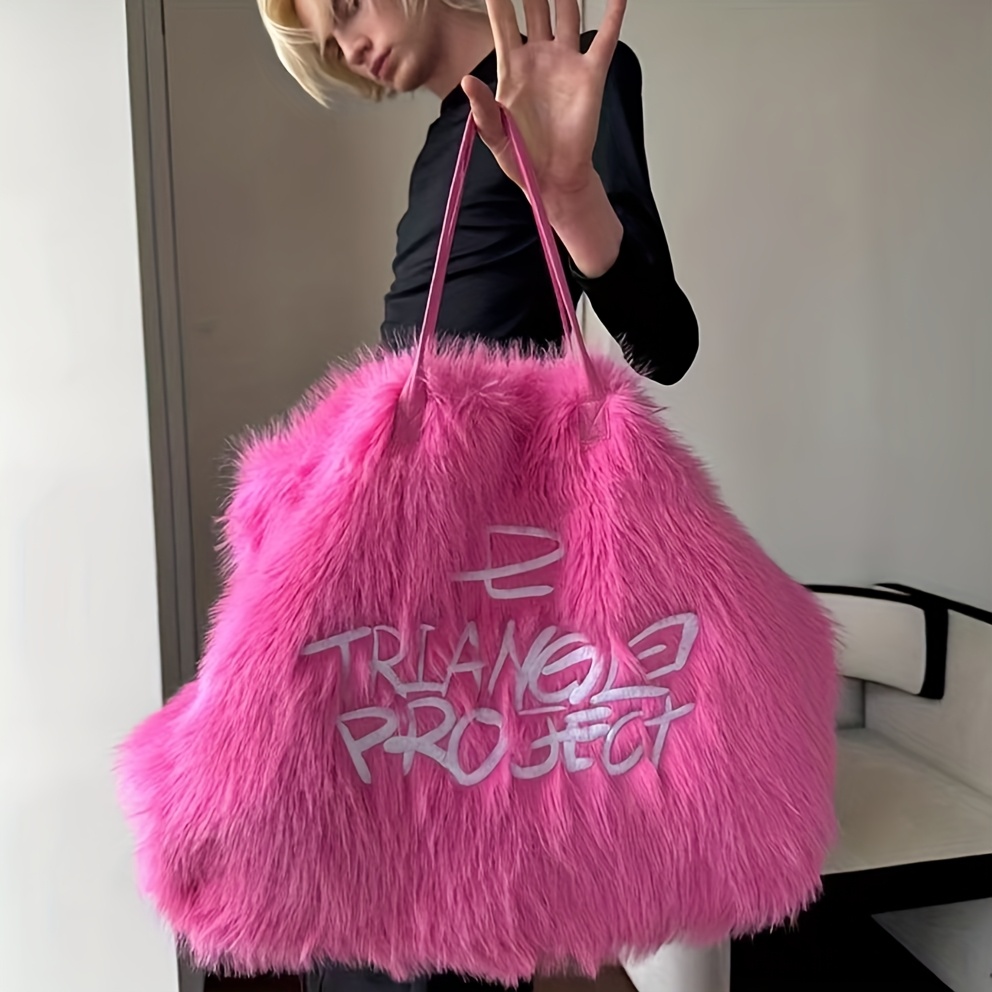 TEMU 여성용 대용량 숄더백 - 롱 플러피 핸드백, 소프트 핑크/블랙, 스냅 클로저, 우아한 여성 나잇 아웃 데일리 패션 가방, 캐주얼 액세서리, 피스, 넉넘깔린 수납공간, 세련된 여성 핸드백