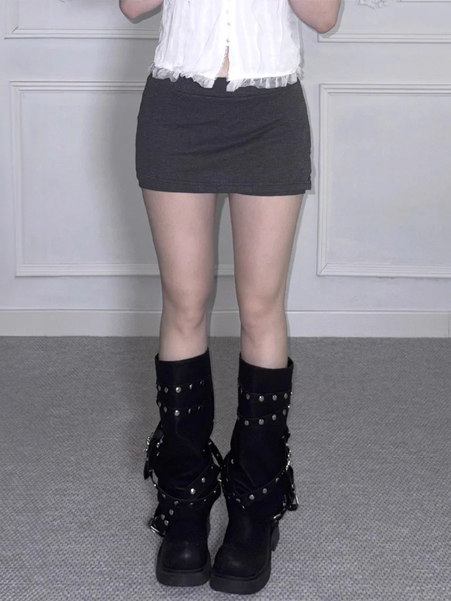 스트리트 스타일 하이웨이스트 엘라스틱 스커트 팬츠, 사이드 버튼과 슬릿 디자인, 여성용 통근 스타일 스트레이트 레그 팬츠