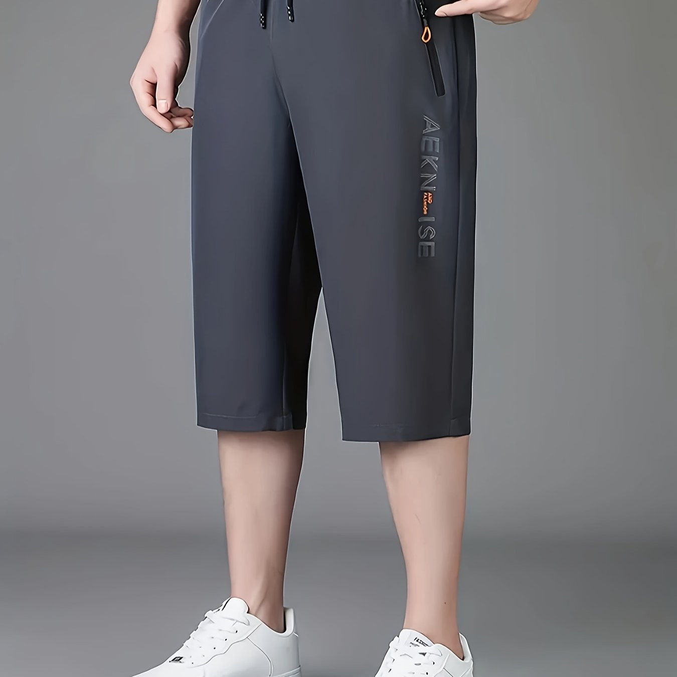 TEMU 남성용 지퍼 포켓 액티브 반바지, 편안한 허리 드로스트링 빠른 건조 반바지, 러닝, 스포츠, 피트니스 쿼터