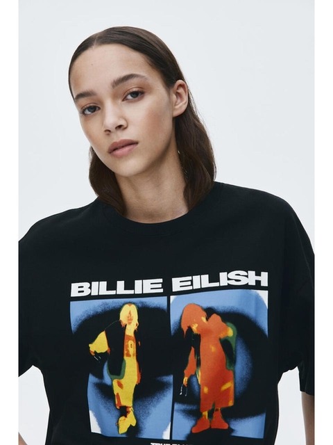[에이치엔엠] 오버사이즈 프린트 티셔츠 블랙/빌리 아일리시 1296052025