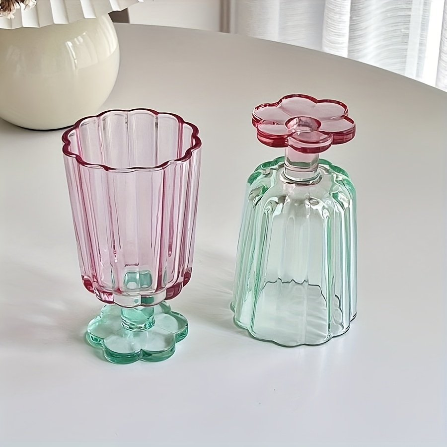 TEMU 2/4pcs 우아한 꽃무늬 유리 컵 - 우유, 주스, 차, 물, 맥주, 칵테일, 아이스크림을 위한 재사용 가능한 고품질 음료 유리 컵 - 가정, 바, 주방 사용에 적합 - 이상적인 생일 또는 솔로 기프트, 홈 음료 유리 컵 | 우아한 유리 컵 | 재사용 가능한 유리 컵