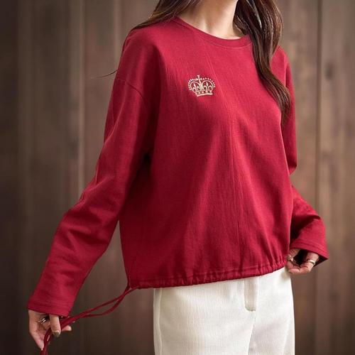 [신상오픈런]여성 긴팔 맨투맨 리본 자수 가을 라운드 티셔츠 빨강