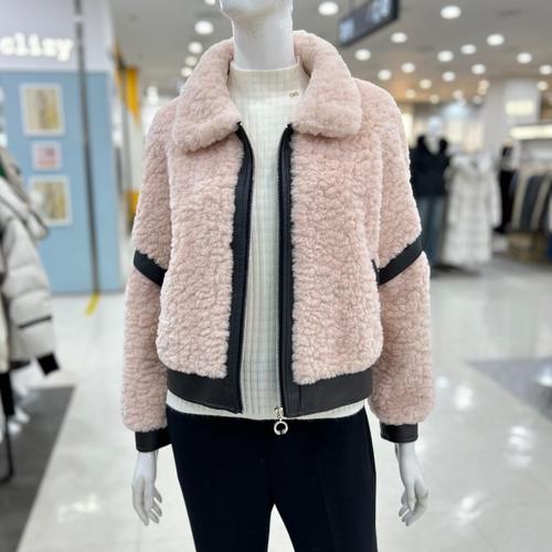 [르니앤맥코이]카라넥 뽀글이 핑크 무스탕 퍼 자켓 MN01MJ706HJY