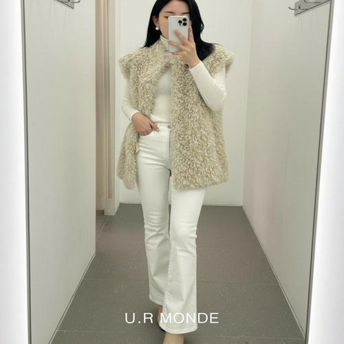 [보니제이]여성 퍼 뽀글이 베스트 베이지 반하이넥 겨울 조끼 B-