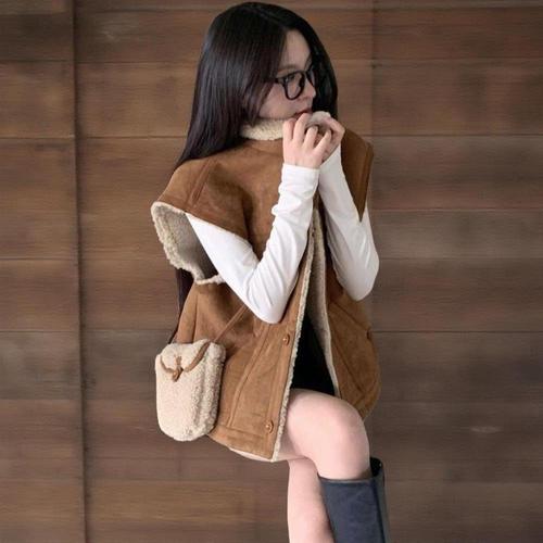 마켓피아 여성용 겨울 베스트 뽀글이 조끼
