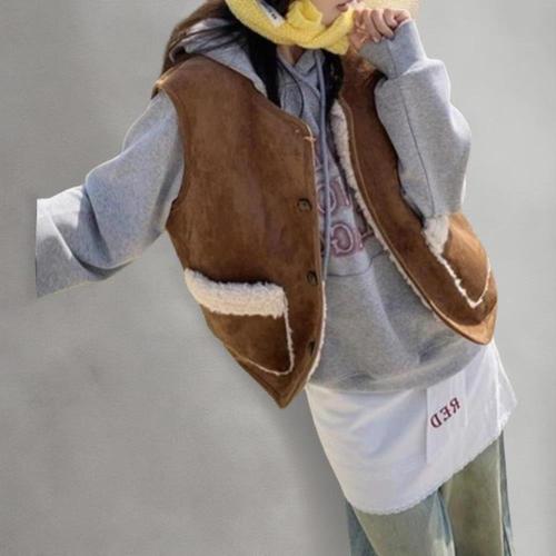 은창)뽀글이 엣지 버튼 라인 포근 조끼 겨울 보온