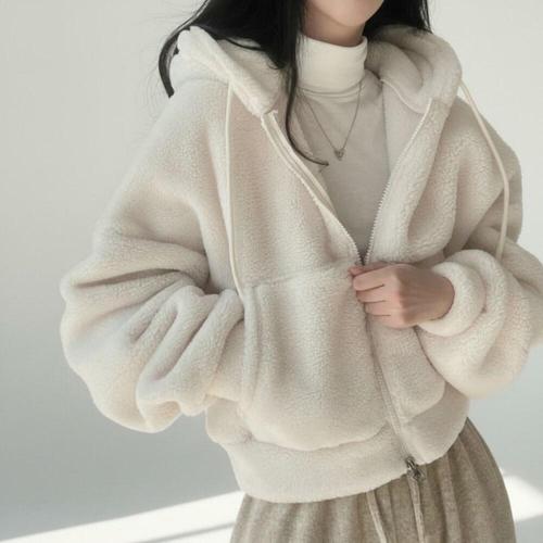 [신상오픈런]여성 세미 크롭 양털 후드 집업 데일리 뽀글이 자켓