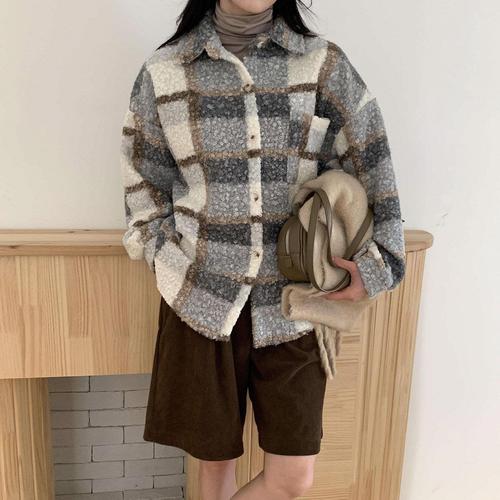 [시크블랙]커루니 뽀글이 오버핏 포켓 체크 자켓