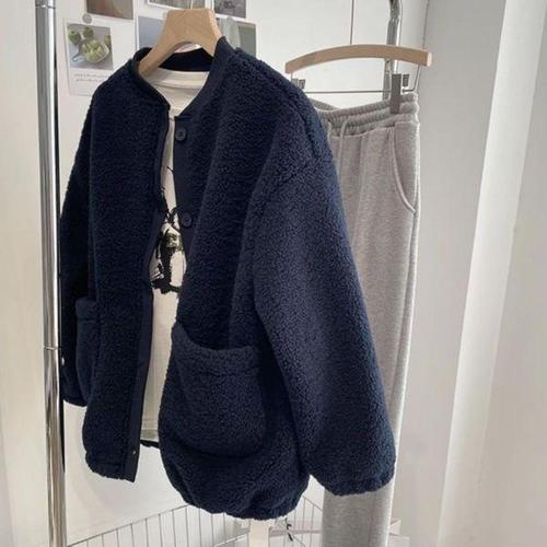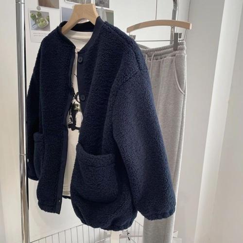 [옷자락]여자 오버핏 포근한 뽀글이 라운드넥 베이직 자켓